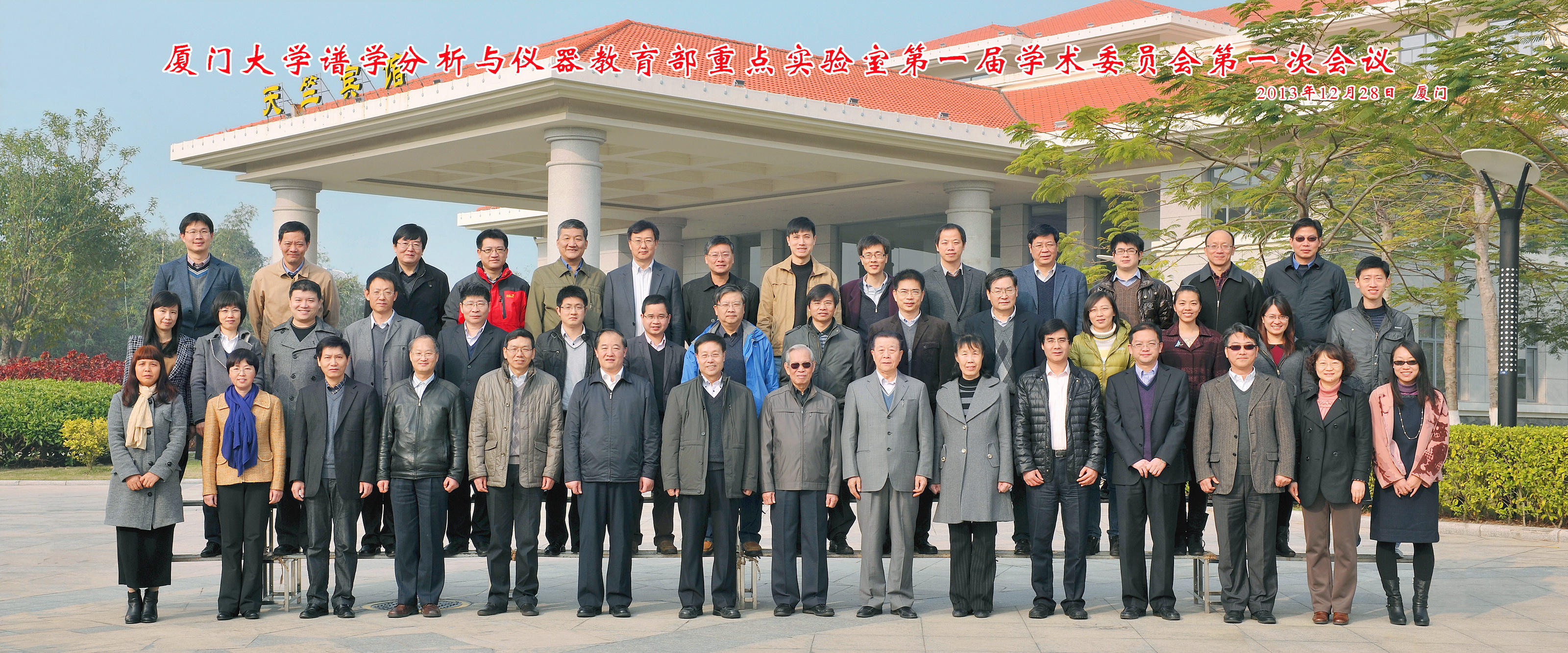 2013年8月28日,教育部科技[2013]276号文通知批准厦门大学重组“谱学分析与仪器”教育部重点实验室。为分析总结分析化学学科过去五年的发展,谋划实验室重组及未来发展战略和方向,实验室于2013年12月28日在厦门召开了第一届学术委员会第一次会议,会议由学术委员会主任江桂斌院士主持,参加会议的有实验室学术委员会顾问陈洪渊院士、张玉奎院士、黄本立院士以及学术委员会成员杨秀荣院士、庄乾坤教授、刘买利研究员、陈义研究员、邵元华教授、严秀平教授、张新荣教授、庞代文教授、杨芃原教授、谢剑炜研究员、鞠熀先教授、王建华教授、江云宝教授、王秋泉教授。厦门大学科技处周涵韬副处长,厦门大学化学化工学院林辉书记、袁友珠副院长应邀出席了会议。同时参加会议的还有厦门大学谱学分析与仪器教育部重点实验室全体成员。