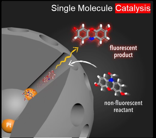单分子化学成像: 对单个活性催化位点在反应过程的实时成像是研究催化的最新最前沿的方法。多样化的纳米颗粒合成结合超分辨率荧光显微镜以及高灵敏度的单分子追踪是实现这一方法的根本。这一研究可以揭示最根本的催化反应机理,并指导催化剂设计。多孔材料催化剂上的纳米限域效应以及二维材料活性位化学动力学表征及相关反应机理是我们目前的研究重心。
