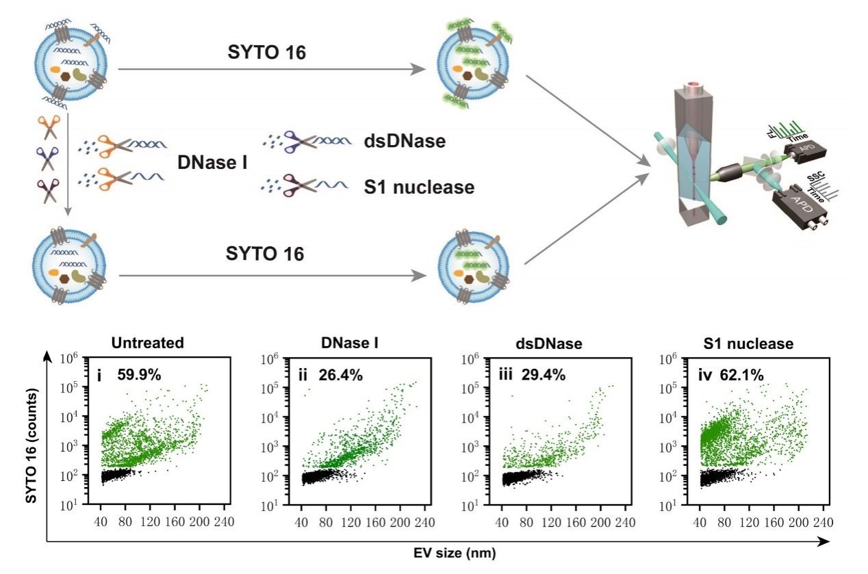 我室颜晓梅教授课题组在细胞外囊泡DNA研究方面取得重要进展,相关成果以“Analysis of extracellular vesicle DNA at the single-vesicle level by nano-flow cytometry”为题近日在线发表于Journal of Extracellular Vesicles(J. Extracell. Vesicles, 2022, e12206)。