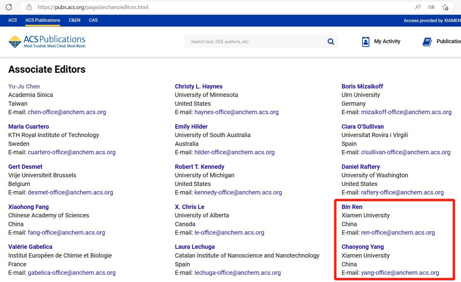 来源:https://pubs.acs.org/page/ancham/editors.html