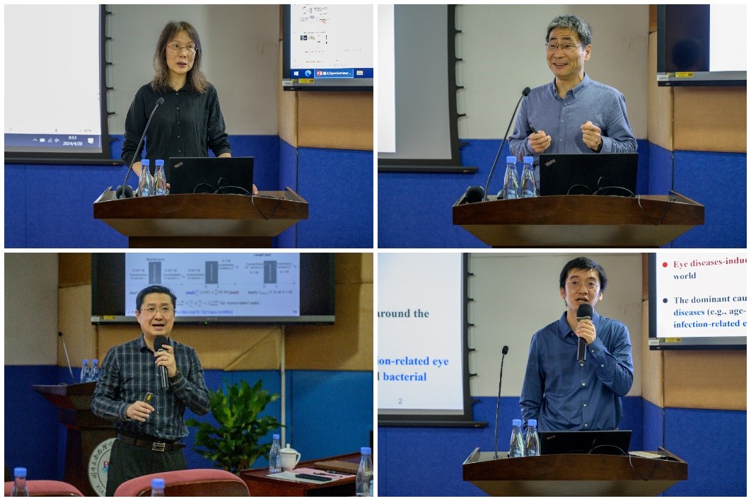 会议报告环节精彩纷呈,内容丰富。刘宝红教授带来题为细胞力学动态成像与测量的报告,刘老师首先介绍了为什么要进行力学研究,之后介绍了课题组力学作用下细胞的行为和关键分子的作用以及单分子测量方面的最新研究成果;张四纯教授带来题为单细胞代谢物质谱流式分析的报告,张老师详细介绍了动态流式质谱单细胞代谢物分析的方法,并就质谱流式细胞仪研制过程中遇到的几个关键问题和其未来研究应用场景与在场师生开展交流讨论;夏帆教授带来题为基于固态纳米孔/通道的分析检测的报告,夏老师从三个公式出发,详细介绍了课题组基于纳米限域离子信号,在不同尺度生物信息分子的高灵敏、高选择性、高特异性检测方面的最新研究成果;何耀教授带来题为长时程成像分析及其疾病精准诊治的报告,何老师介绍了课题组将生物成像分析用于眼科疾病诊治的相关研究,并分享了将科学研究转化为临床实践服务于人类健康的实例。