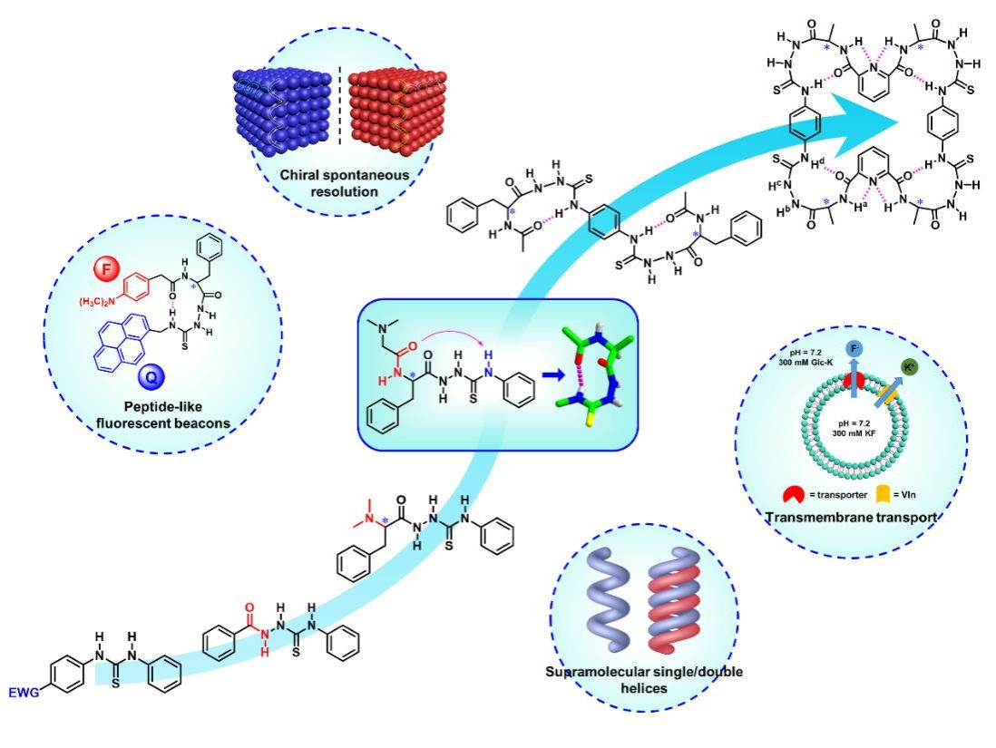 近日,我室江云宝教授课题组应邀在Acc. Chem. Res.期刊发表题为“N-Acylaminoacid amidothiourea: A versatile chiral helical building block”的综述论文,该文叙述了课题组多年来关于酰胺基硫脲、酰基氨基酸酰胺基硫脲类新分子和超分子构建结构基元的形成和演化历程,并展望了未来发展方向。