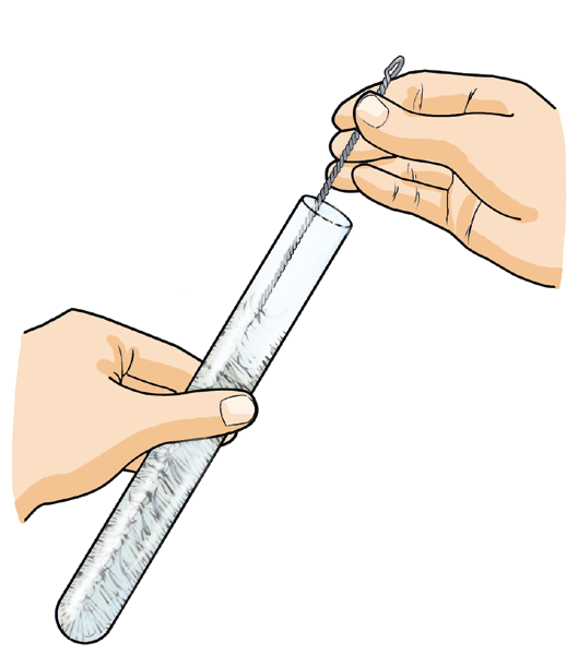 除此之外,在使用试管时还应该注意:装液体时,液体体积不超过试管容积的1/2。加热液体时,液体的量不能超过试管容积的1/3,试管与桌面成45°左右。取块状固体要用镊子夹取放至试管口,然后慢慢竖起试管使固体滑入试管底。洗涤试管时,先将试管内的废液倒入废液缸,然后注入半试管水,振荡,把水倒掉,如此反复几次;若试管内壁附有不易冲洗掉的物质,可用试管刷刷洗,先将刷毛顺至试管内,然后转动或上下移动试管刷柔力刷洗,反复多次直至刷净。