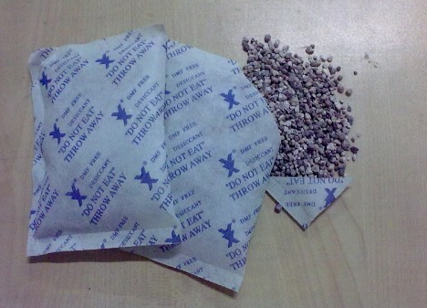 蒙脱石干燥剂又叫粘土干燥剂,是以纯天然蒙脱石为原料干燥活化制成,主要成分的化学式为:Al2O3·4SiO2·nH2O。其外观形状为灰色、紫色或紫红色的小球,是一种无腐蚀、无毒、无公害的绿色环保产品,它的吸湿性能良好。在常温常湿的环境下,单一的蒙脱石矿物干燥剂吸湿率大约是18%-25%,复合型蒙脱石干燥剂的吸湿能力比单一的蒙脱石干燥剂高50%。常用于电子产品、精密机械、军工器材等各种需要防潮的领域。