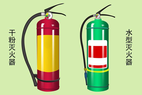 根据灭火剂的不同,干粉灭火器可分为磷酸铵盐干粉灭火器和碳酸氢钠干粉灭火器等。磷酸铵盐干粉灭火器可用于扑灭A类、B类(固体火灾场所)、C类(气体火灾场所)以及E类(带电火灾场所)火灾场所。碳酸氢钠干粉灭火器可用于扑灭B类、C类、E类火灾场所。