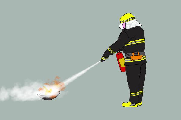 干粉灭火器的灭火原理是:干粉极度细密,能够附着在燃烧物表面,抑制燃烧。使用干粉灭火器时,需要近距离对火焰进行喷射,由于干粉容易飘散,不宜逆风喷射。