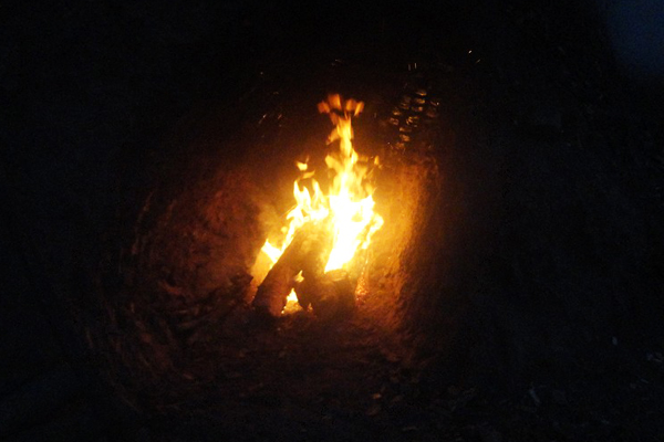 木材遇火时,其中的水分会逐渐蒸发,温度达到100℃时,木材会变得非常干燥。如果继续加热,木材就会进入热分解阶段,到130℃左右,木材会分解出大量水蒸气和二氧化碳。当温度超过170至180℃,木材的热分解速度加快,会释放出一氧化碳、甲烷、乙烯等可燃气体,这些气体燃烧,就形成了明亮的火焰。如果木材继续燃烧,温度到达200℃以上,分解出的可燃气体就会陆续燃烧殆尽,木材颜色逐渐变深,完全炭化,即变为了木炭。