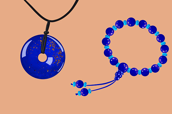 在青金石的挑选上,颜色鲜明是首要因素,颜色太浅的青金石硬度偏低且易磨损;太深则是因为其中黄铁矿含量较高。一般来说,青金石所夹杂的共生矿物越少越好,但完全无任何共生矿物的青金石很少。