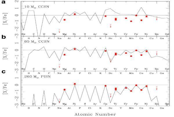 此项研究中,团队结合郭守敬望远镜低分辨率光谱和日本昴星团望远镜高分辨率光谱数据发现了一颗化学丰度极为特殊的极贫金属星(LAMOST J1010+2358),这颗恒星的化学丰度特征无法通过核坍缩超新星理论模型解释,却与260倍太阳质量的对不稳定超新星理论计算结果高度吻合。