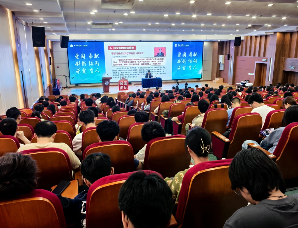 在讲坛上,中国科学院院士、中国科学院上海药物研究所(以下简称“药物所”)研究员陈凯先作题为《勇担使命踔厉奋发,让青春在科技报国的奋斗中闪光》的专题报告。
